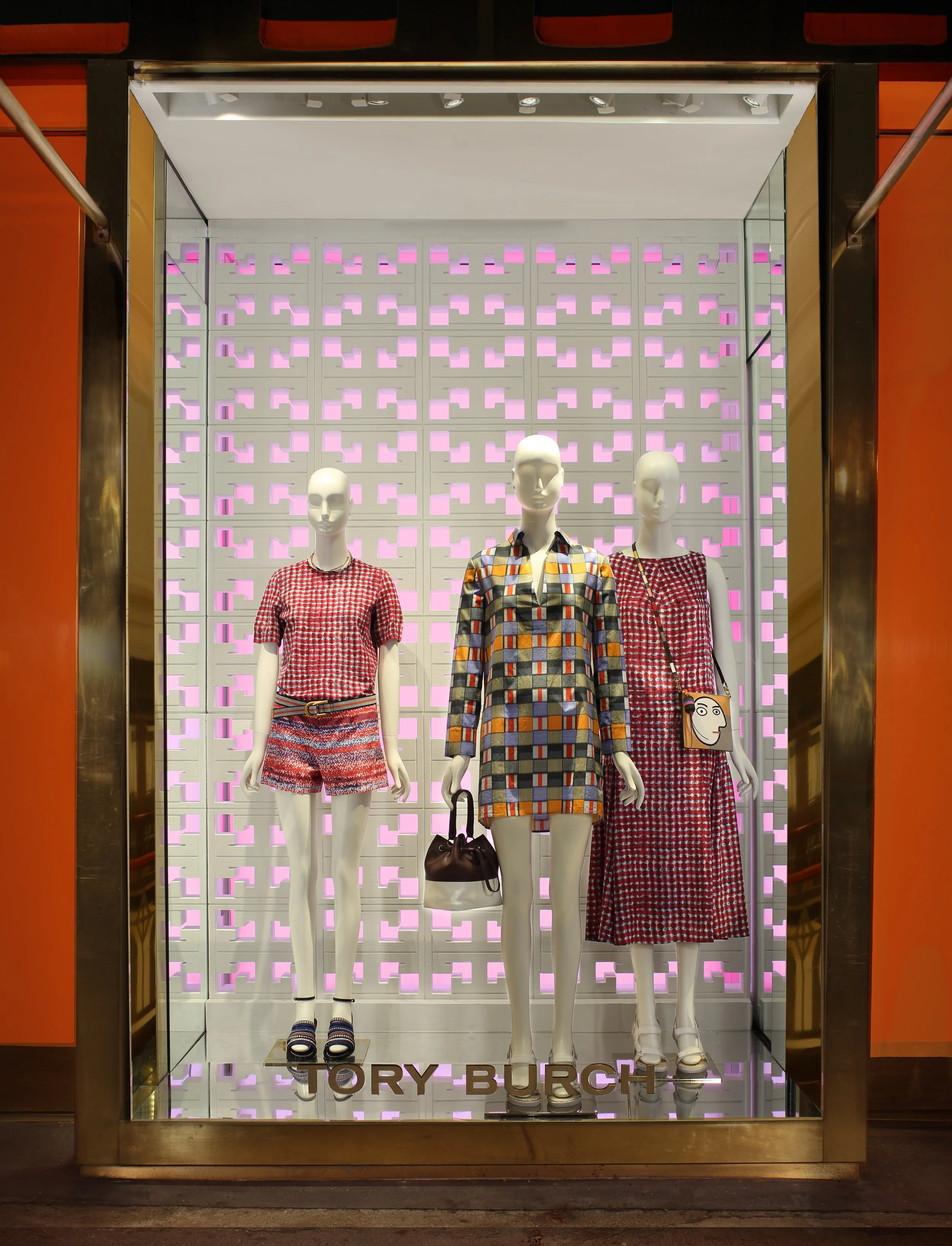 The Spring 2015 window is about: Clean shapes transformed with texture. Classic elements made graphic. A celebration of the free-spirited mix. Spring 2015, in its push and pull of the raw and refined, features them all. The backdrop of the collection itself takes cues from geometric breeze blocks found in places like Palm Springs grounding the collection with bohemian global flair.